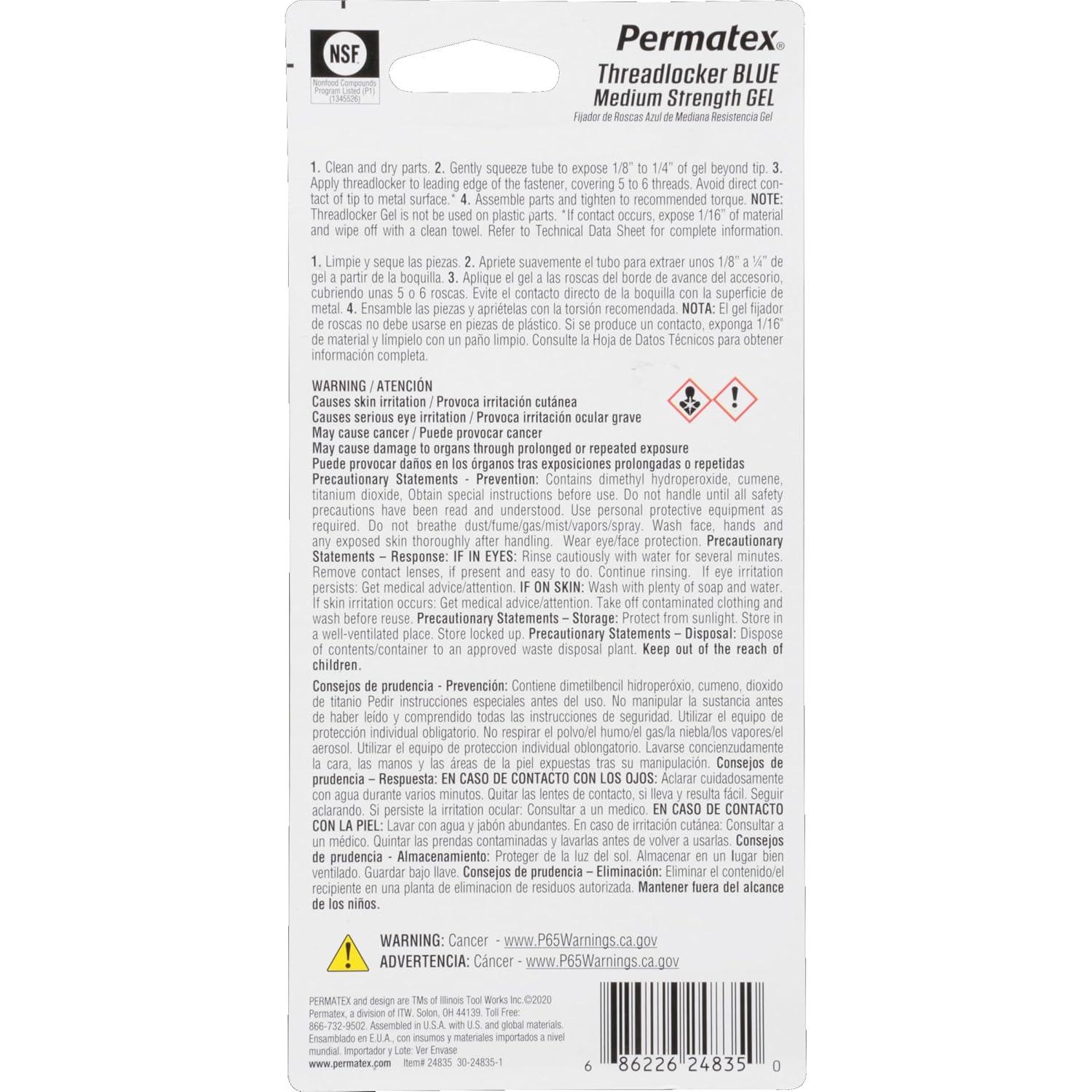 Perfect For Most Jobs- Permatex Threadlocker Blue Is Ideal For All Nut And Bolt Applications 1/4″ To 3/4″ (6mm To 20mm) And Eliminates The Need To Stock Expensive Lock Nuts And Lock Washers