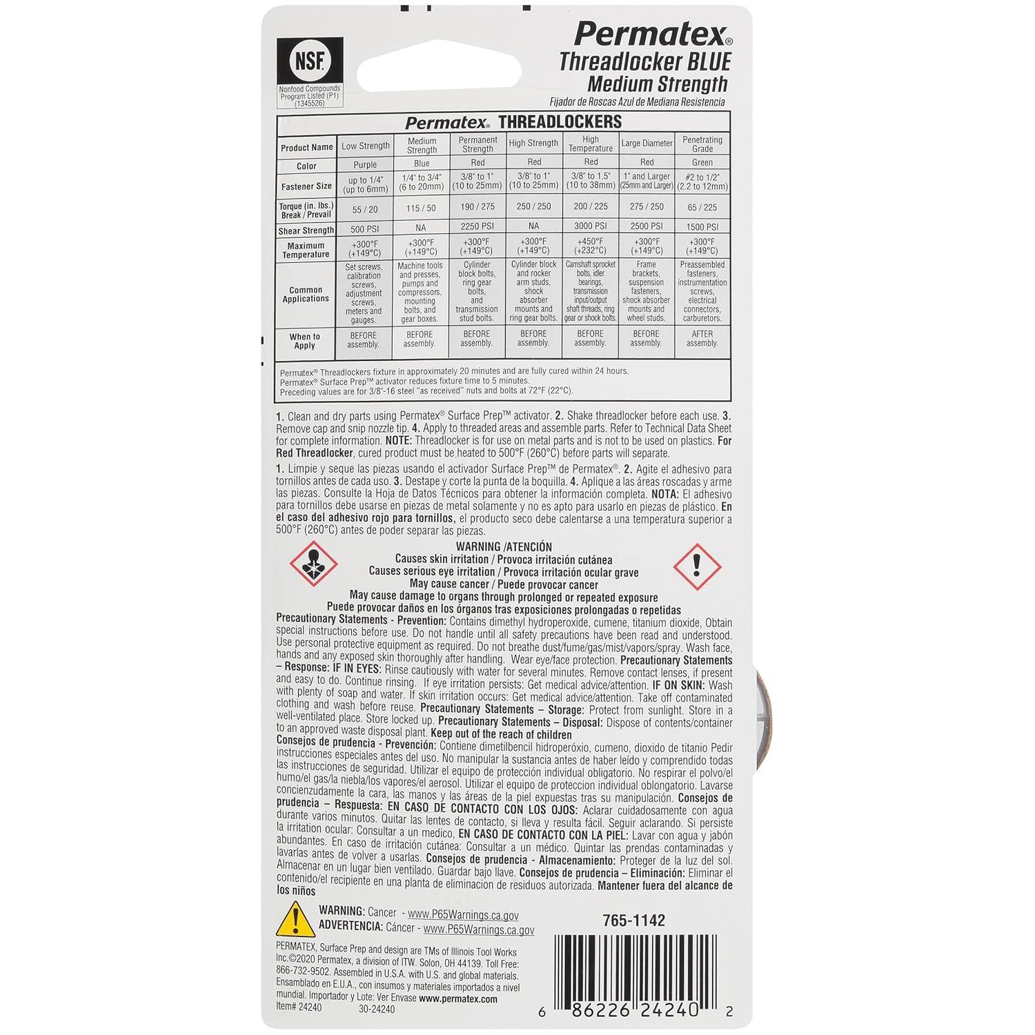 Perfect For Most Jobs- Permatex Threadlocker Blue Is Ideal For All Nut And Bolt Applications 1/4″ To 3/4″ (6mm To 20mm) And Eliminates The Need To Stock Expensive Lock Nuts And Lock Washers