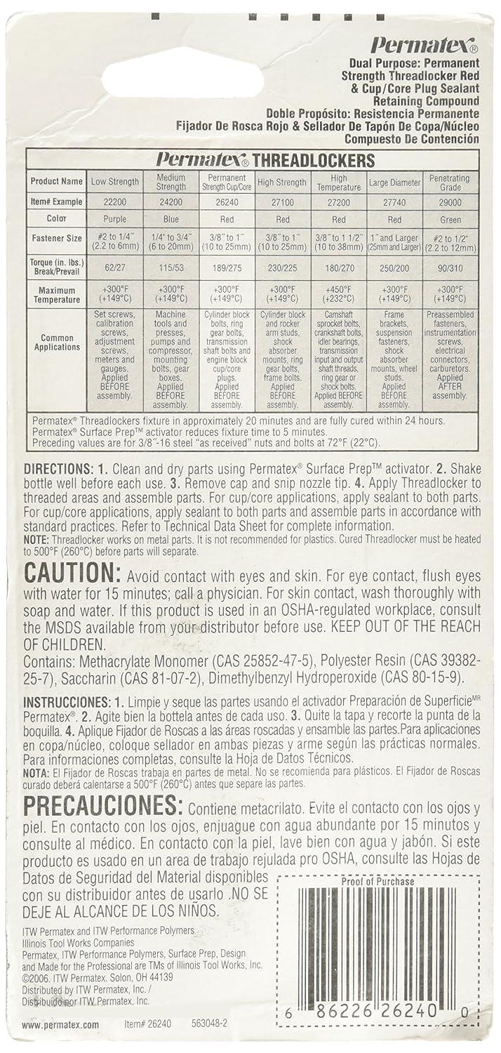 Permatex 27140 High Strength Threadlocker Red, 36 ml(36 ml)