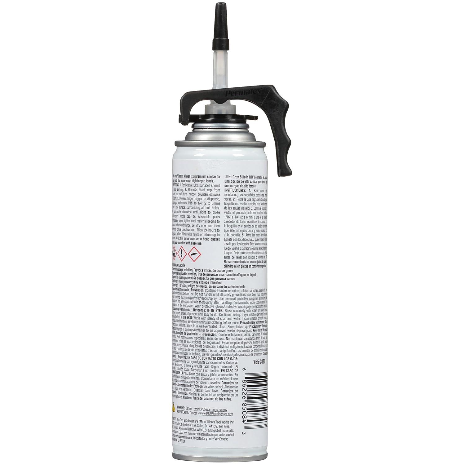 Permatex Ultra Grey Rigid High-Torque RTV Silicone Gasket Maker is designed specially for high-torque and high vibration applications, like those common in import engines. This premium RTV gasket maker exceeds manufacturers' performance requirements, featuring maximum vibration resistance and outstanding resistance to oils, cooling and shop fluids. Non-corrosive and low-odor. OEM specified, with a temperature range of -65 degrees fahrenheit to 500 degrees fahrenheit, intermittent. Permatex always has the right gasket maker for your application.